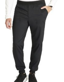 This Men’s Modern fit mid-rise pull-on jogger has an elastic-reinforced waistband with interior drawstring. There is mesh trim on the waistband and above the front pockets. There are six pockets: two front pockets, double cargo pockets on the wearer’s right side, a welt cargo on the wearer’s left side, and one back patch pocket. Other features include a faux fly, rib-knit cuffs, and double-needle stitching throughout. Tapered leg, 10″ opening. Inseam: 33″. Fabric Content: 78% Polyester / 20 % Rayon / 2% Spandex Twill.